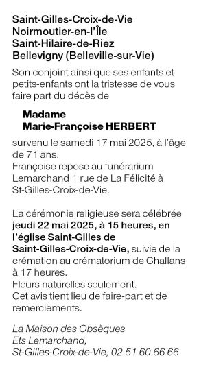 Cet espace « condoléances » est dédié à la mémoire de Madame Marie-Françoise HERBERT.