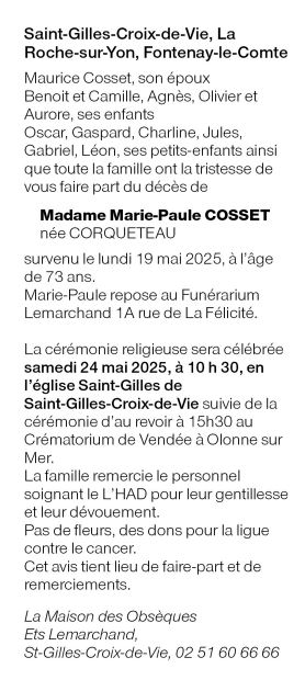 de Madame Marie-Paule COSSET née CORQUETEAU