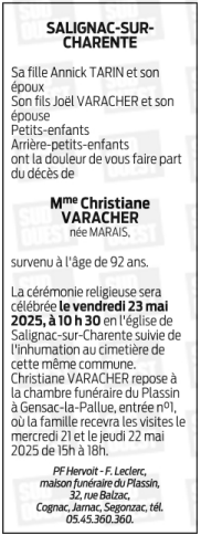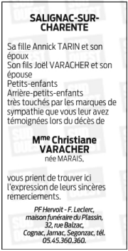 de Madame Christiane VARACHER née MARAIS