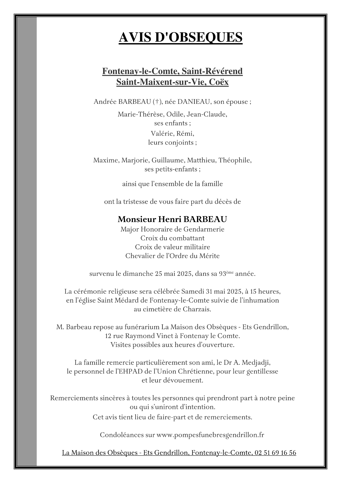 de Monsieur Henri BARBEAU
