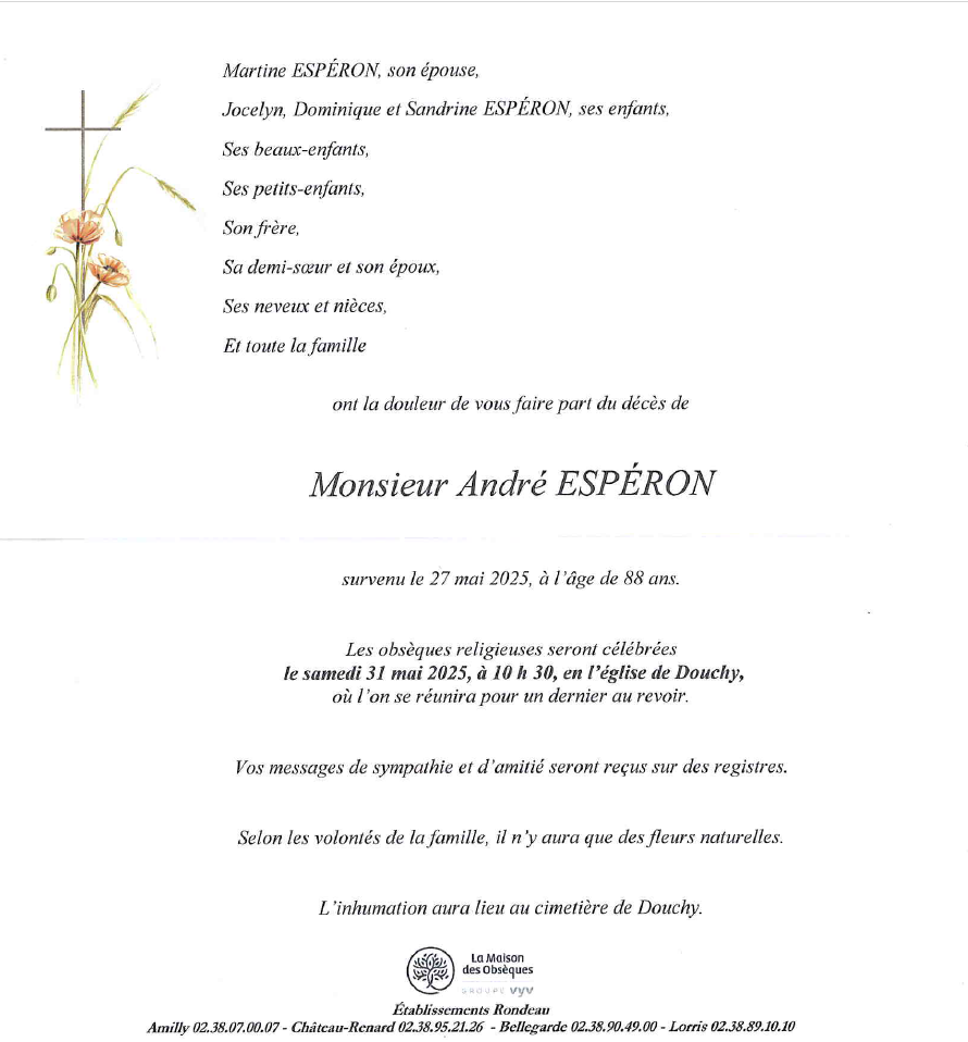 Décédé à Courtenay (45320) le mardi 27 mai 2025