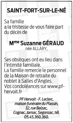 de Madame Suzanne GÉRAUD née ALLARY
