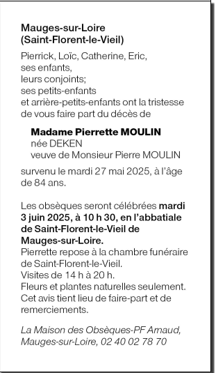 Cet espace « condoléances » est dédié à la mémoire de Madame Pierrette DEKEN.