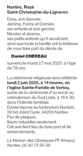 Cet espace « condoléances » est dédié à la mémoire de Monsieur Daniel CHEREAU.