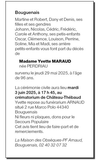 de Madame Yvette MARAUD née PERDRIAU