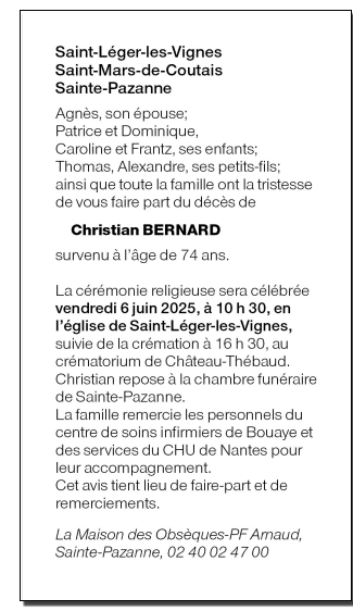 Cet espace « condoléances » est dédié à la mémoire de Monsieur Christian BERNARD.