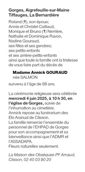 de Madame Annick GOURAUD née SALMON