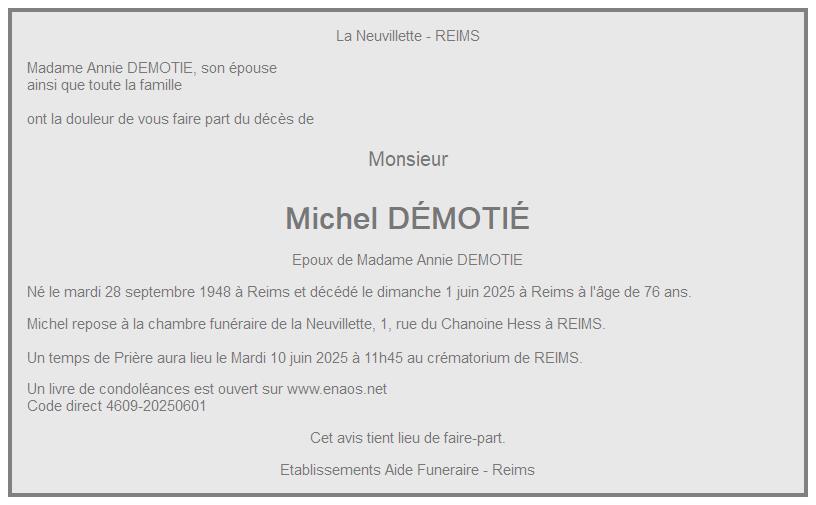 Cet espace « condoléances » est dédié à la mémoire de Monsieur Michel DÉMOTIÉ.