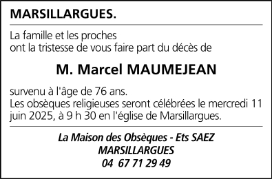 Cet espace « condoléances » est dédié à la mémoire de Monsieur Marcel MAUMEJEAN.
