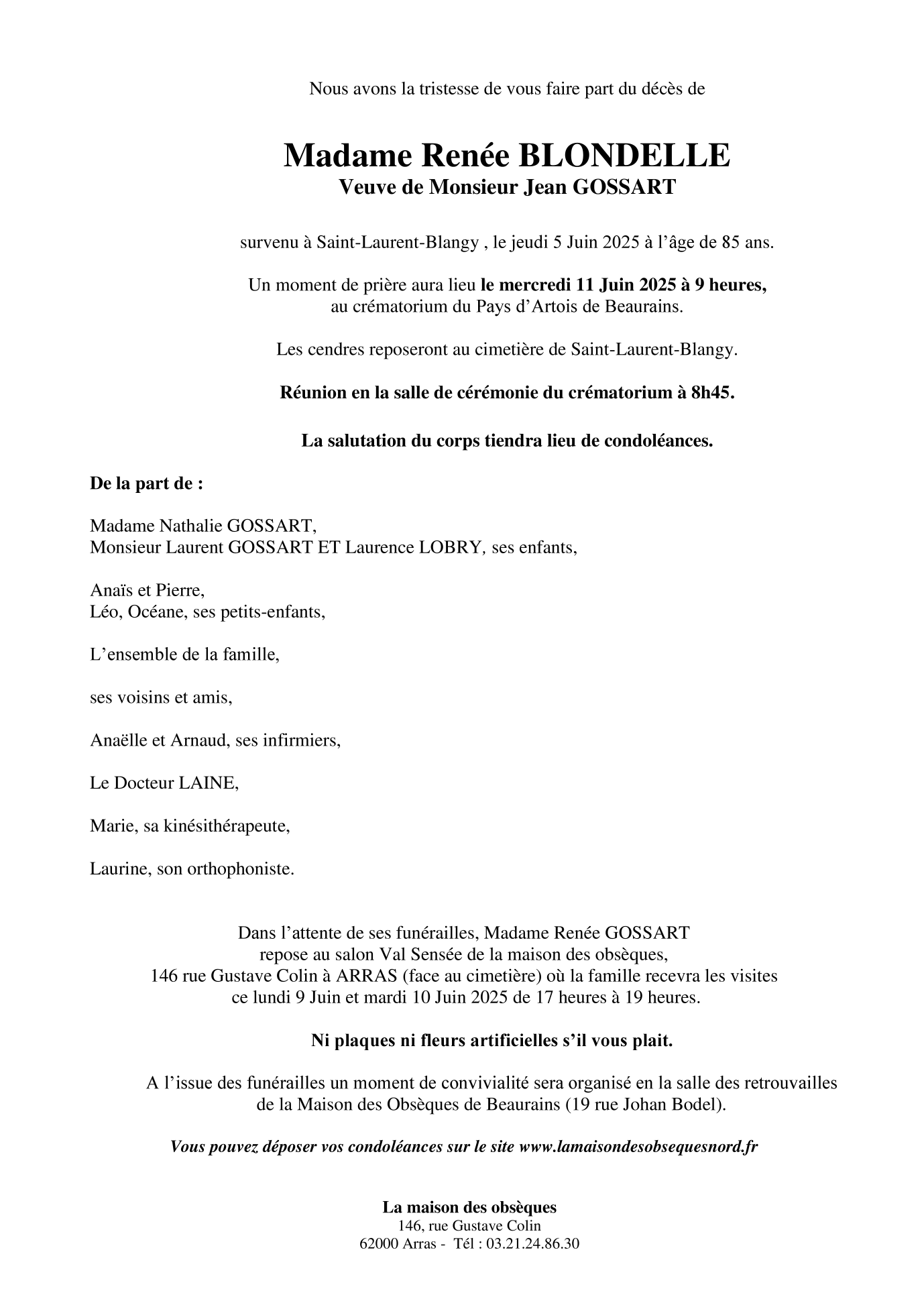 de Madame Renée GOSSART née BLONDELLE