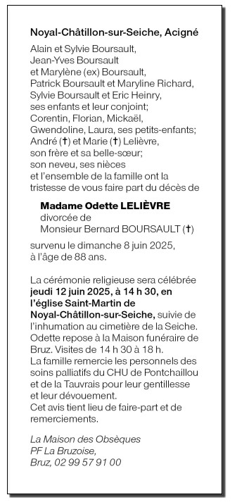 Cet espace « condoléances » est dédié à la mémoire de Madame Odette LELIÈVRE.
