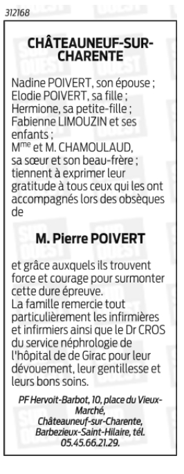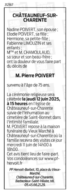 Cet espace « condoléances » est dédié à la mémoire de Monsieur Pierre POIVERT.
