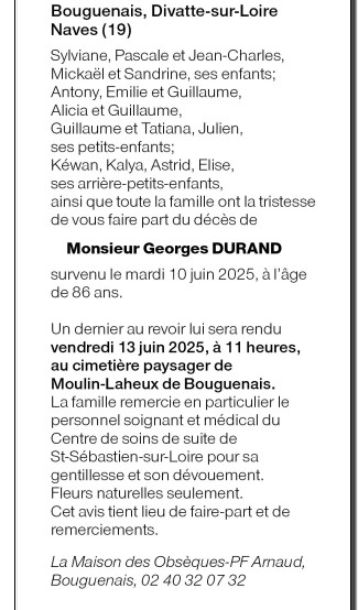Cet espace « condoléances » est dédié à la mémoire de Monsieur Georges DURAND.