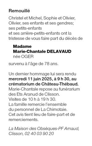Cet espace « condoléances » est dédié à la mémoire de Madame Marie-Chantale OGER.