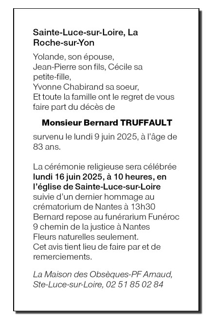 Cet espace « condoléances » est dédié à la mémoire de Monsieur Bernard TRUFFAULT.