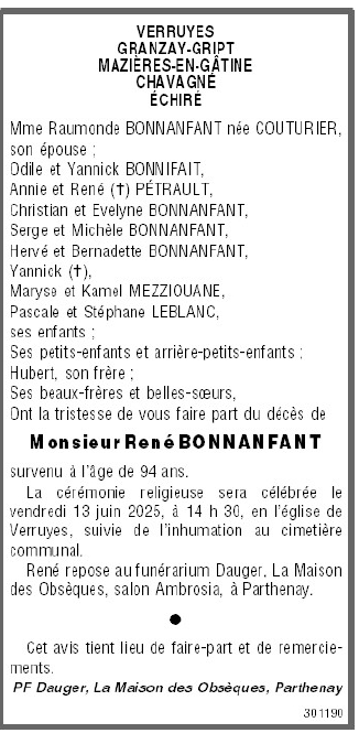 de Monsieur René BONNANFANT