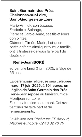 de Monsieur René-Jean BORÉ