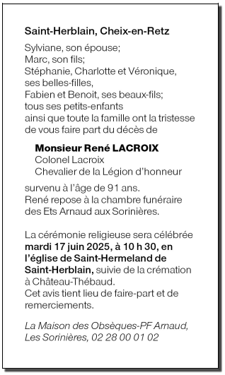 Cet espace « condoléances » est dédié à la mémoire de Monsieur René LACROIX.