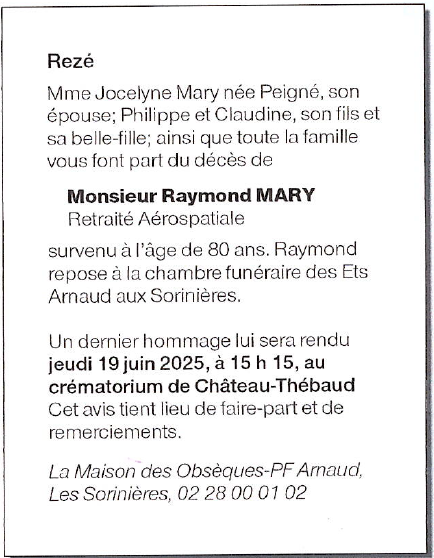 de Monsieur Raymond MARY