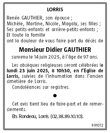 Cet espace « condoléances » est dédié à la mémoire de Monsieur Didier GAUTHIER.
