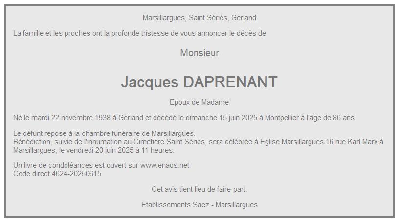 de Monsieur Jacques DAPRENANT