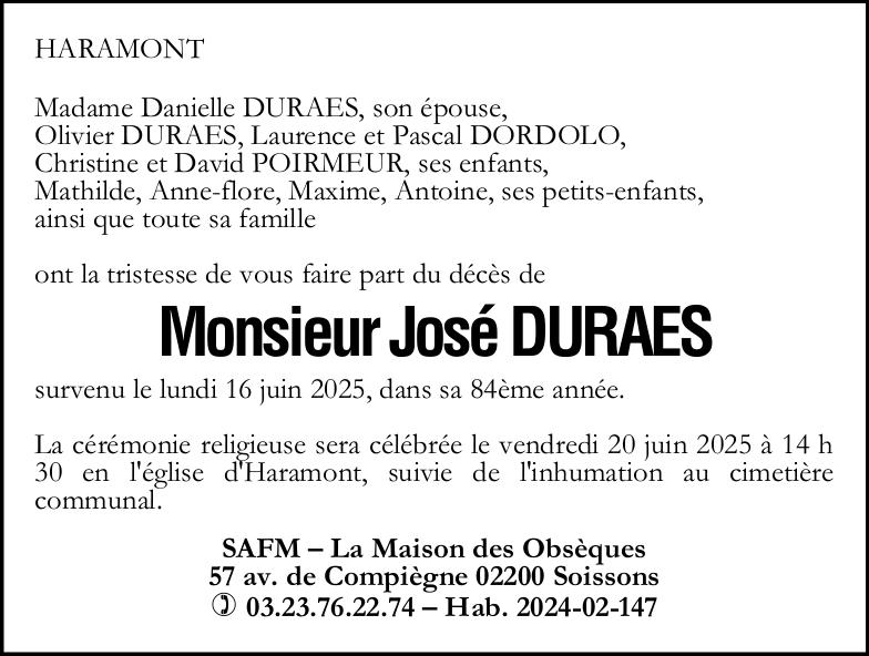 de Monsieur José DURAÈS