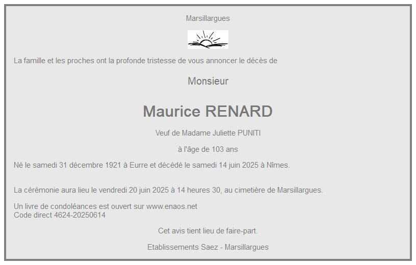 Cet espace « condoléances » est dédié à la mémoire de Monsieur Maurice RENARD.