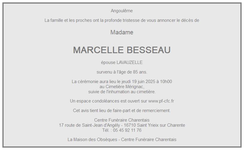 de Madame MARCELLE LAVAUZELLE née BESSEAU