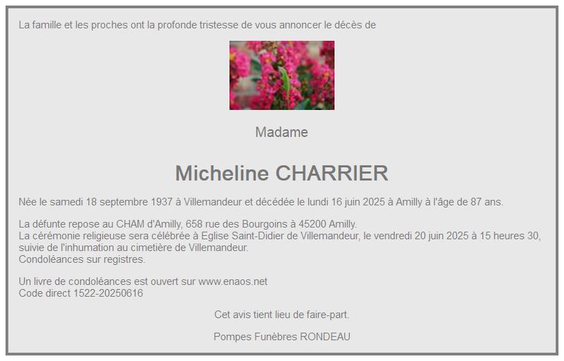 de Madame Micheline CHARRIER