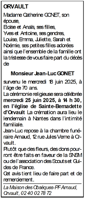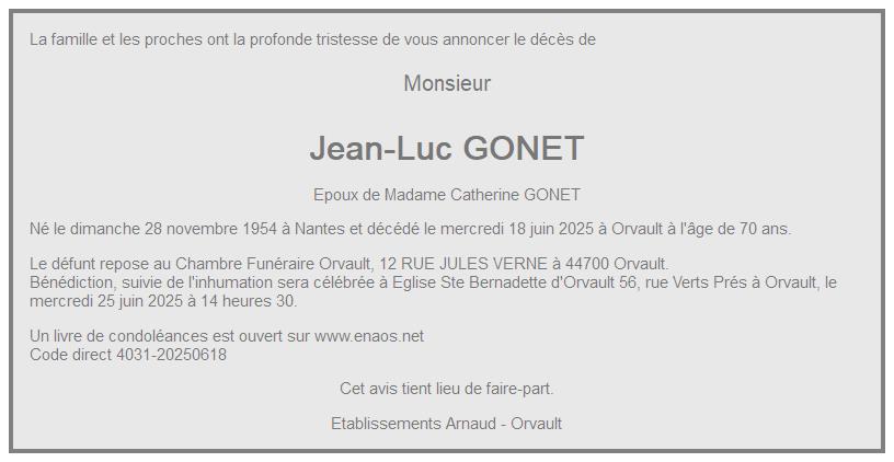 Cet espace « condoléances » est dédié à la mémoire de Monsieur Jean-Luc GONET.