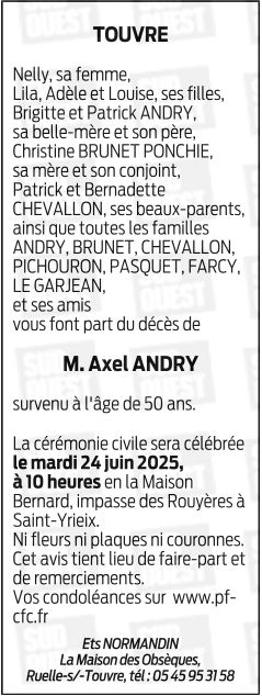 Cet espace « condoléances » est dédié à la mémoire de Monsieur Axel ANDRY.