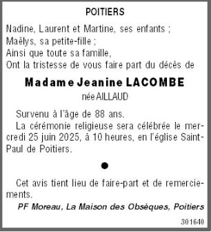 de Madame Jeanine LACOMBE née AILLAUD