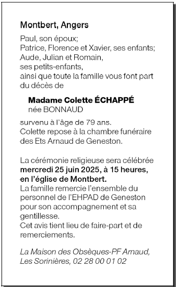 de Madame Colette ÉCHAPPÉ née BONNAUD