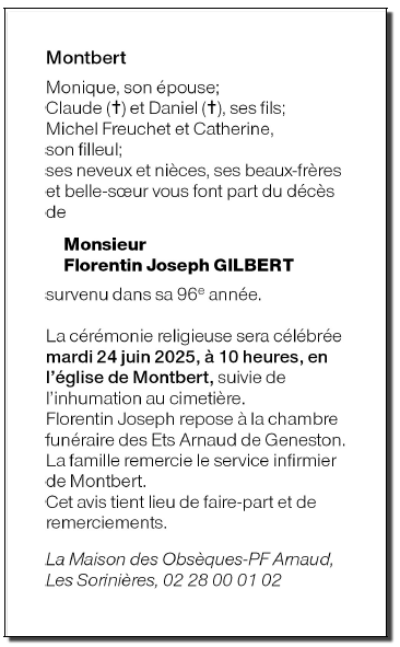 Cet espace « condoléances » est dédié à la mémoire de Monsieur Florentin GILBERT.