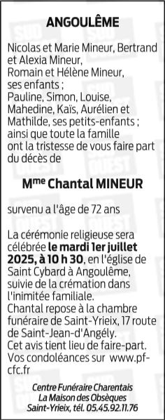 de Madame Chantal MINEUR née MONICHON
