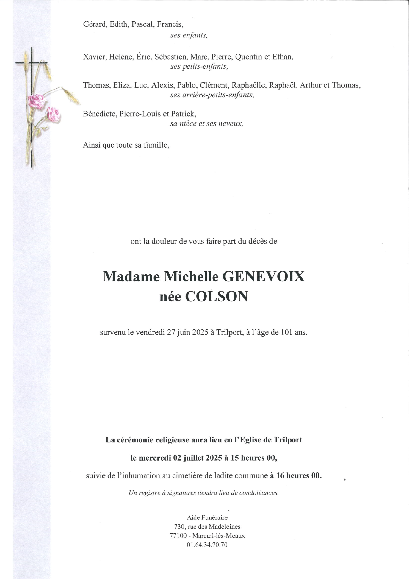 de Madame Michelle GENEVOIX née COLSON