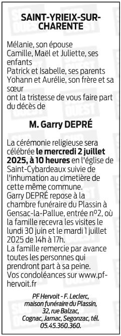 Cet espace « condoléances » est dédié à la mémoire de Monsieur Garry DEPRÉ.