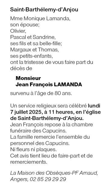 Cet espace « condoléances » est dédié à la mémoire de Monsieur Jean LAMANDA.