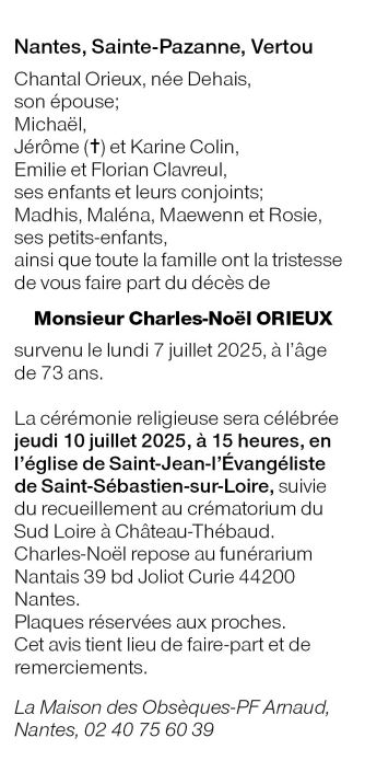 Décédé à Nantes (44000) le lundi 7 juillet 2025