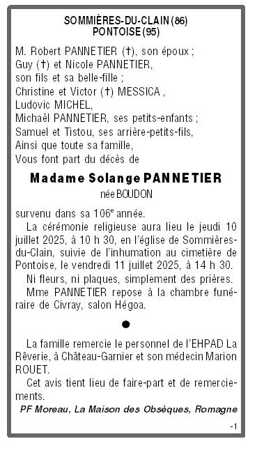 de Madame Solange PANNETIER née BOUDON