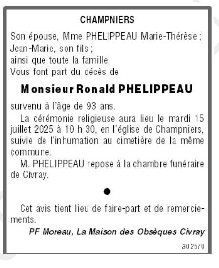 Cet espace « condoléances » est dédié à la mémoire de Monsieur Ronald PHELIPPEAU.