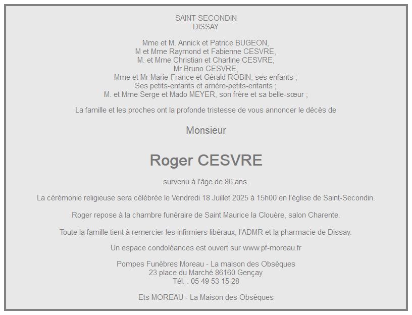 de Monsieur Roger CESVRE