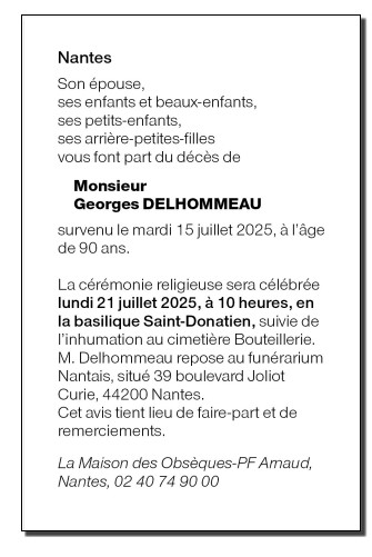 Décédé à Nantes (44000) le mardi 15 juillet 2025