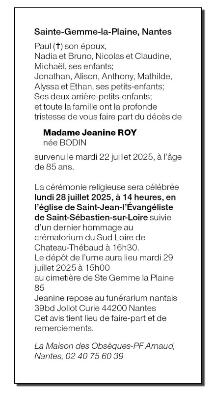 de Madame Jeanine ROY née BODIN