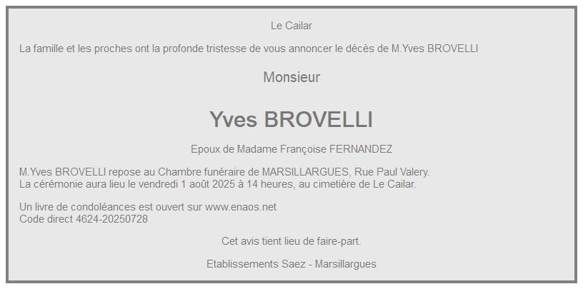 Cet espace « condoléances » est dédié à la mémoire de Monsieur Yves BROVELLI.