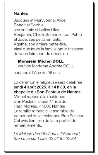Cet espace « condoléances » est dédié à la mémoire de Monsieur Michel DOLL.