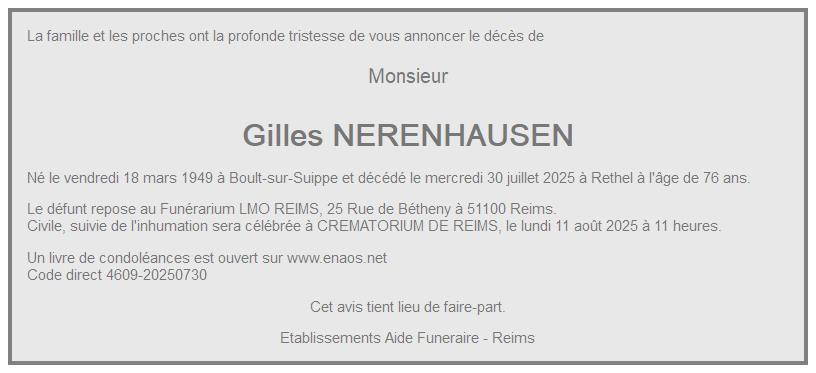 Cet espace « condoléances » est dédié à la mémoire de Monsieur Gilles NERENHAUSEN.