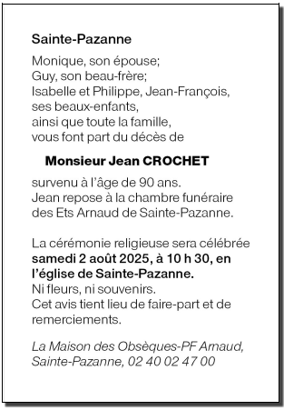 Cet espace « condoléances » est dédié à la mémoire de Monsieur Jean CROCHET.