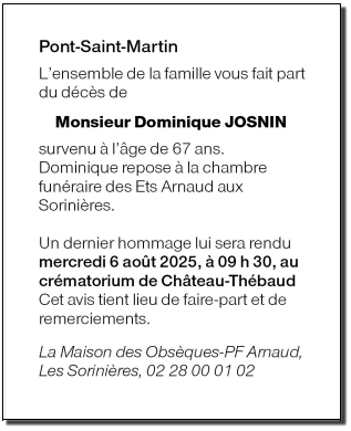 Cet espace « condoléances » est dédié à la mémoire de Monsieur Dominique JOSNIN.