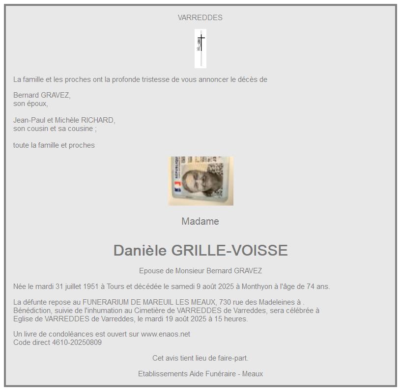 de Madame Danièle GRAVEZ née GRILLE-VOISSE